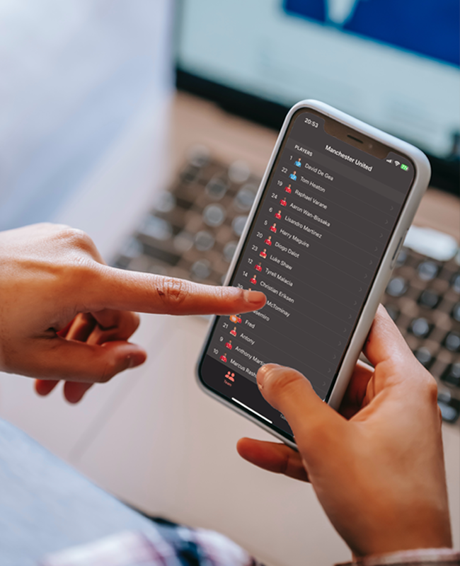 The Manchester United application provides a comprehensive list of players and their details, and also offers the Premier League table.